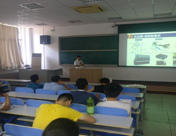 郑耀以公司的宣传片开场,首先简要介绍了公司的基本情况,然后讲述了自己的光学历程:学习期、科研期和企业期,并详细讲述了科研期和企业期两段历程。科研方面,郑耀首先介绍了激光干涉仪、哈特曼传感仪等光学测量仪器方面的情况,随后介绍了强激光武器光学系统、非球面主镜轻量化、应力盘加工技术等激光武器光学系统方面的情况。企业方面,首先介绍了公司的组织架构、核心技术、业务发展、生产流程等,然后介绍了光学镀膜、微投影显示、医疗光学方面的内窥镜系统等公司的一些科研成果和产品。报告由临床手术中的智能识别内窥镜讲到了智能识别的下一步研究方向生物识别,该技术可以应用于身份登记等,让同学们对高科技企业产品研发流程和人才需求情况有了更深入的了解。