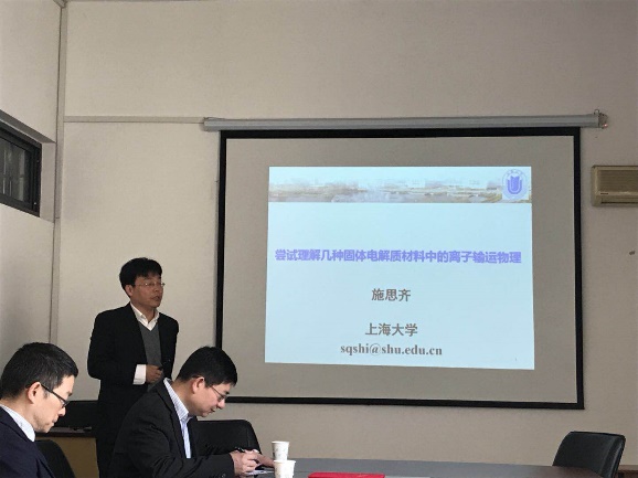 401会议室,为全院师生分别作了题为《锂-氧电池中的关键科学问题和技术挑战》和《尝试理解几种固态电解质材料中的离子运输物理》的学术报告,报告会由郭向欣教授主持。