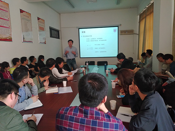 师生作了题为《外延钙钛矿极性/非极性界面的制备、电荷转移和调控研究》的学术报告,报告会由滕冰院长主持,师生共计60余人聆听了报告。