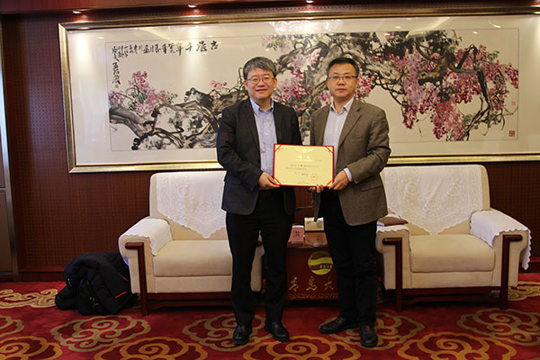 物理所丁洪研究员应邀访问我校。校党委常委、副校长肖江南在办公楼204接待室会见了客人,并为其颁发了兼职教授聘书。随后,丁洪在博学楼304教室为色碟