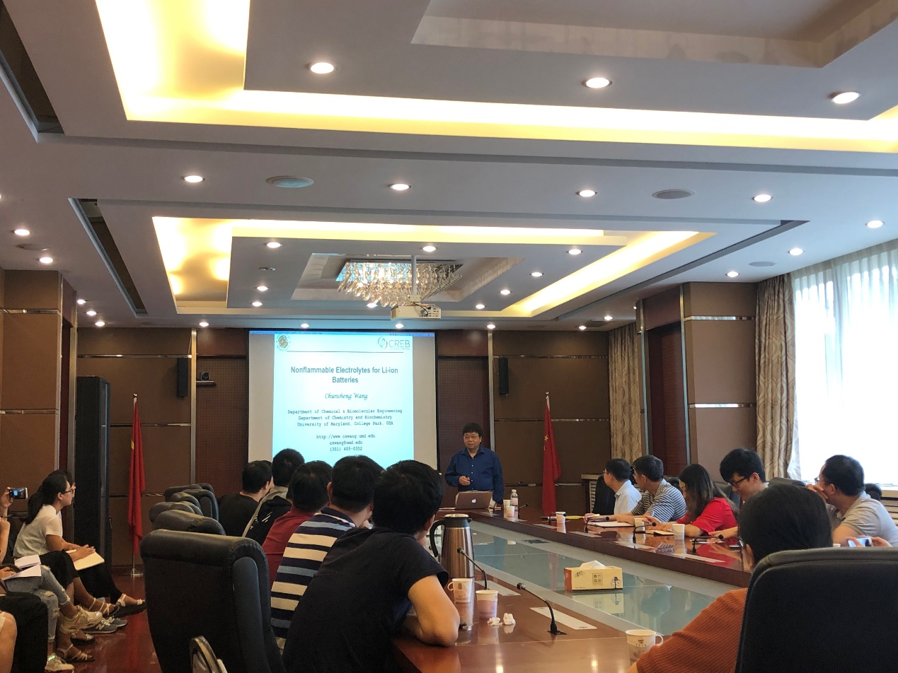 8月24日上午,美国马里兰大学化工与分子生物工程系王春生教授应邀来我校交流访问,并在办公楼201会议室为师生作了题为《Non-flemmble Electrolytes for Li-ion Batteries》的学术报告。报告会由十大色碟游戏网站