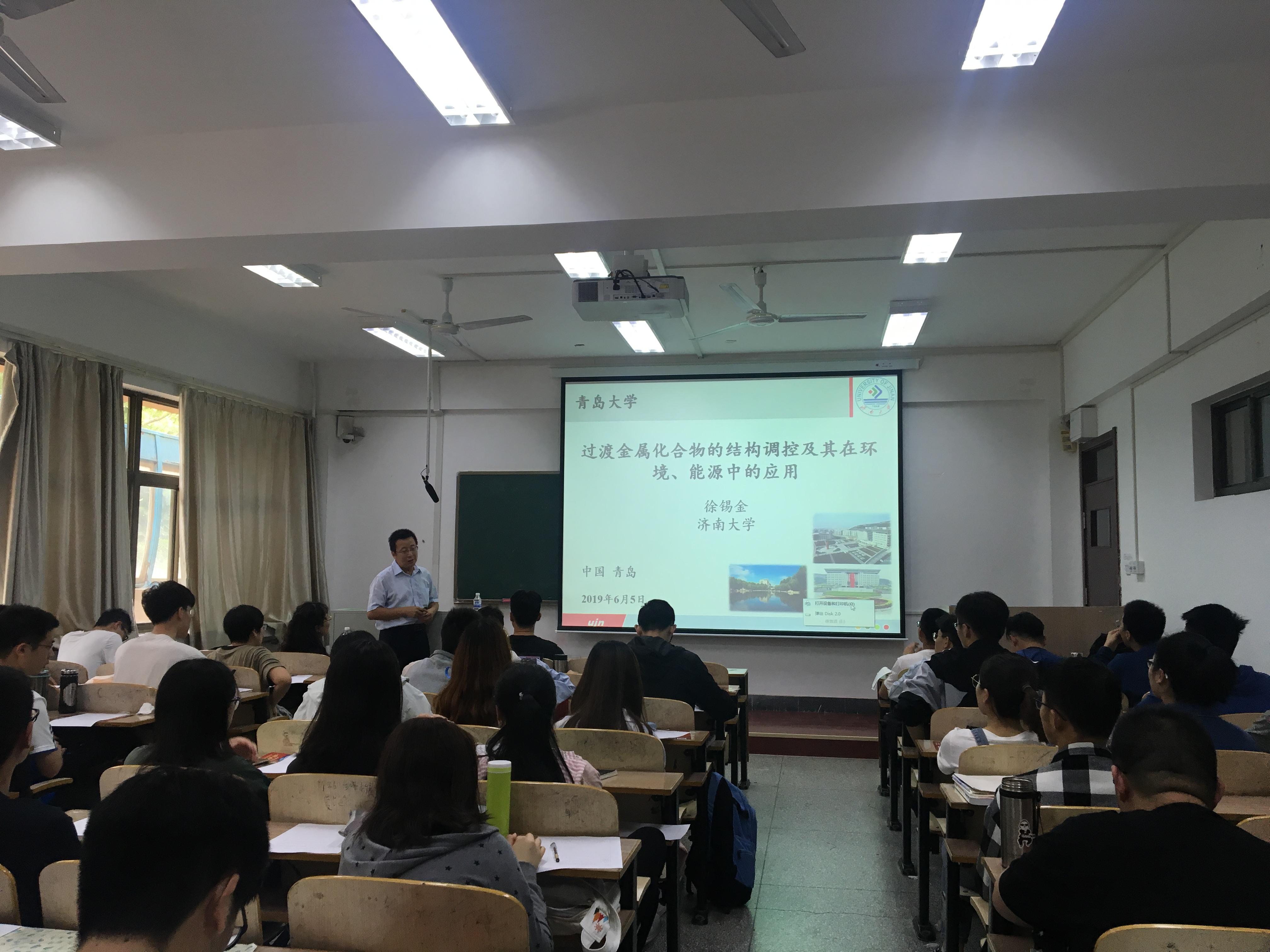 6月5日下午,济南大学徐锡金教授应邀在我校博远楼209教室作了题为 《过渡金属化合物的结构调控及其在环境、能源中的应用》的学术报告。报告会由院长滕冰教授主持,色碟