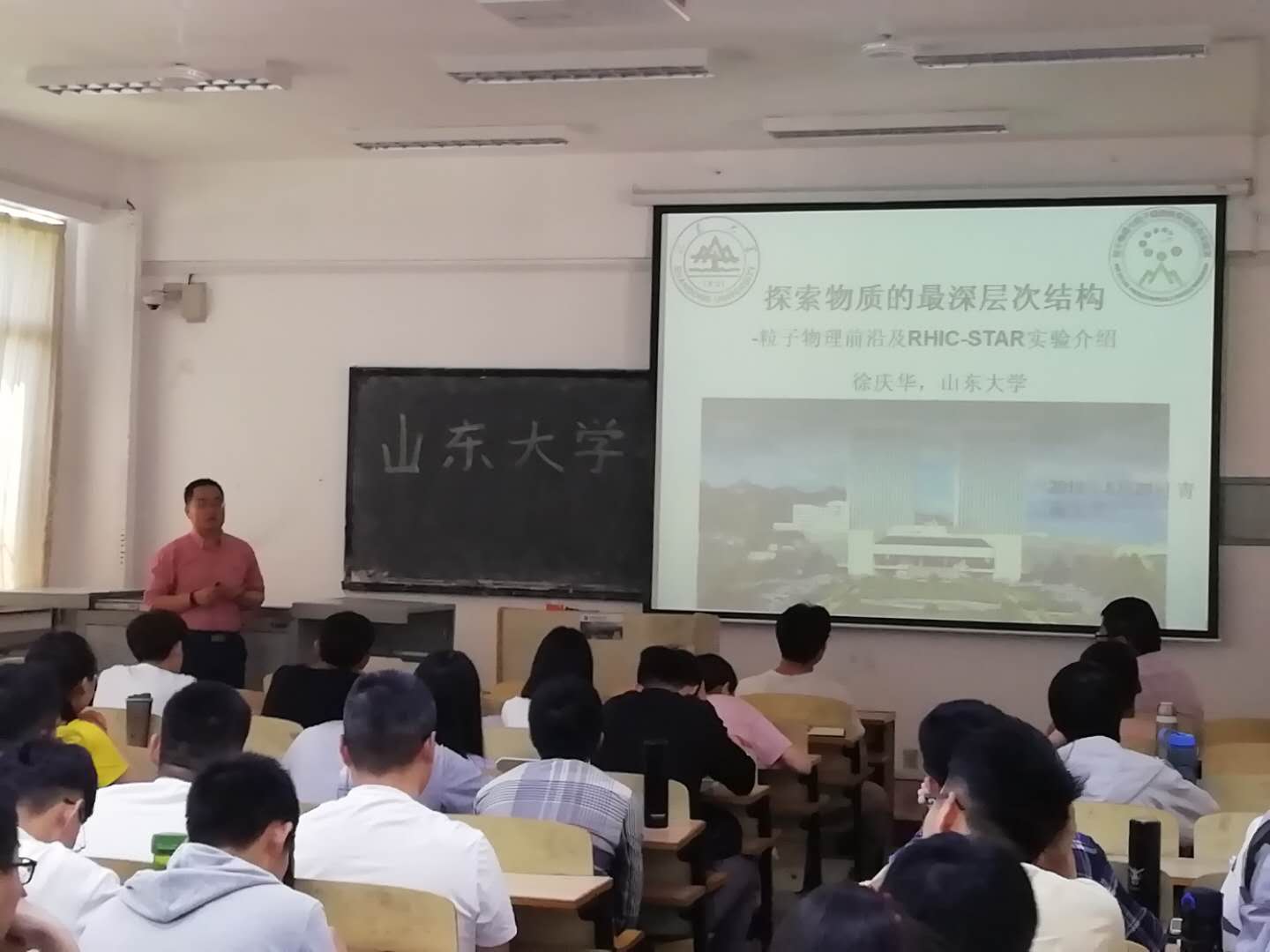 5月29日上午,我校校友、山东大学前沿交叉科学青岛研究院教授、博士生导师,首届国家优秀青年基金获得者徐庆华应邀在博学楼304教室为学生作了题为《探索物质的最深层次结构》的学术报告暨考研宣讲。色碟
