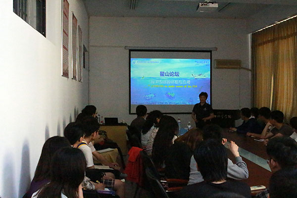 报告从近期举行的“第四届全国海洋技术学术会议”及“海洋传感器创新与发展鳌山论坛”等海洋探测领域相关会议的情况引入,强调了“随着我国自主研发的深潜器和观测平台技术的发展和进步,如何提升深潜器的作业能力、如何借助于这些平台获得有突破性的科学成果,是海洋技术领域关注的焦点”。随后,郑荣儿以时间为主线,围绕海洋探测需求,对课题组近期在发展光谱类海洋传感技术方面取得的进展进行了深入介绍,并站在国家在海洋领域的重大需求的视角上,对在海洋探测领域中光谱技术发展面临的关键问题和未来发展的方向进行了分析。他认为“发展新型海洋原位传感器以适应不同的作业环境、以完成特殊的观测目的成为越来越迫切的需求。这些需求给水下原位光谱技术和深海光谱仪器研发带来了发展机遇,但同时也面临着巨大的挑战”。郑荣儿鼓励学生,物理相关的专业知识在海洋探测的领域大有用武之地。在最后的提问交流环节中,郑荣儿对学生的提问一一给出了详细解答,并邀请老师和学生有机会到中国海洋大学信息工程色碟