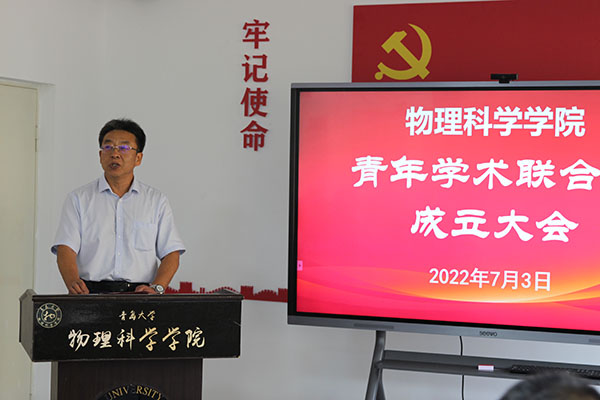 青年学术联合会成立大会暨学术报告会在博逸楼401举行。校党委常委、副校长于永明,山东大学晶体所常务副所长、国家杰青于浩海,科技处处长李荣贵出席大会。色碟