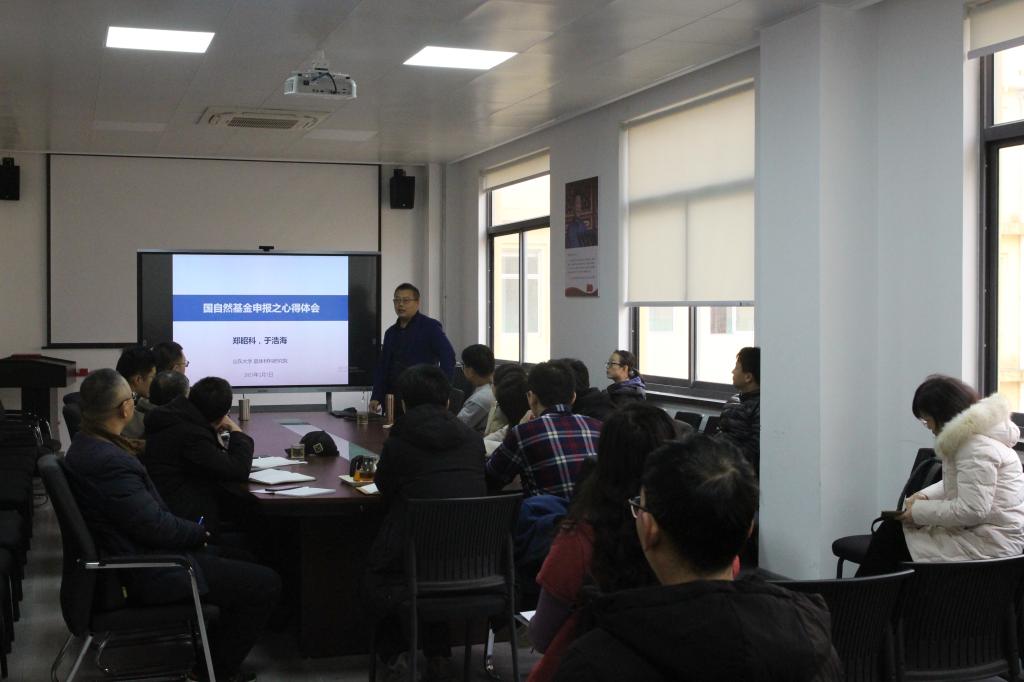 于浩海教授首先以《国家自然基金申报之心得体会》为题做了专题报告,报告从基金申报过程中的领域选择、关键词的选择、摘要的凝练等方面具体讲述了国家自然基金项目及人才项目书写需要注意的事项。于浩海指出不同学部资助范围和关注重点不一样(偏应用/偏基础),申报老师应仔细阅读申报指南,并对专家评审做出一定的预判,有针对性地避免同质化竞争;在书写项目名称和关键词时要精准凝练、切勿大而空;摘要书写时要简明扼要、重点突出并做到小题大做、简体深做;书写过程中措辞务必注意学术的严谨,内容要鲜明体现各个成果的延伸、协同关系,强化故事框架逻辑性。随后,于浩海仔细审阅了与会老师的基金申请书,有针对性地指出申请书中出现的问题及具体修改建议,并为部分老师推荐相关领域的专家进行深入指导。