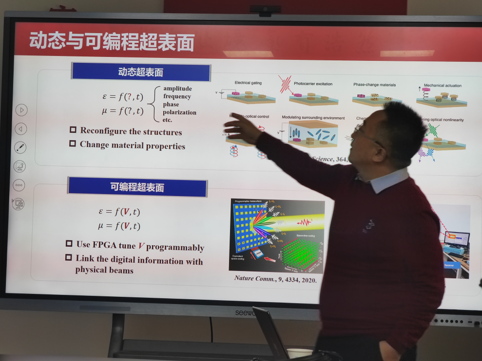 太赫兹团队在无源电路器件、有源异质集成电源和空间波调控技术等方面的研究进展,展示相关技术在先进无线电系统中的应用。参会老师和同学与张教授就太赫兹系统应用于脑胶质瘤等医学诊断和无源成像等关键技术问题进行了深入探讨和交流。