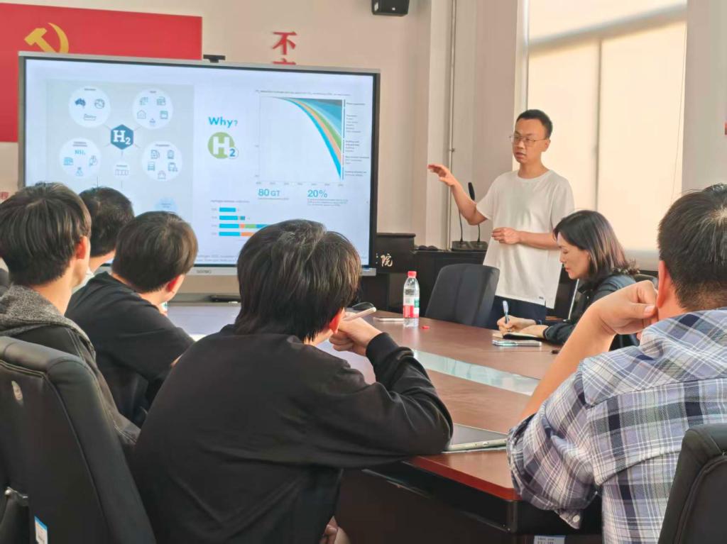 整场报告内容详实,逻辑清晰,既有深刻的理论分析,又展示了丰富的实验成果。在互动环节,与会老师就报告内容展开了热烈且深入的讨论,重点探讨了催化过程在能源转化与储能体系中的关键作用,特别是在金属-空气电池和金属-卤素电池中,氧还原反应、氧析出反应及卤素转化反应的机制。此外,对于同学们在申请澳大利亚高校博士项目存在的疑问,马天翼给予了详尽的解答和指导。此次学术交流为参会师生提供了宝贵的学术视野拓展,也为相关领域的科研创新和项目合作指明了新的思路和方向。