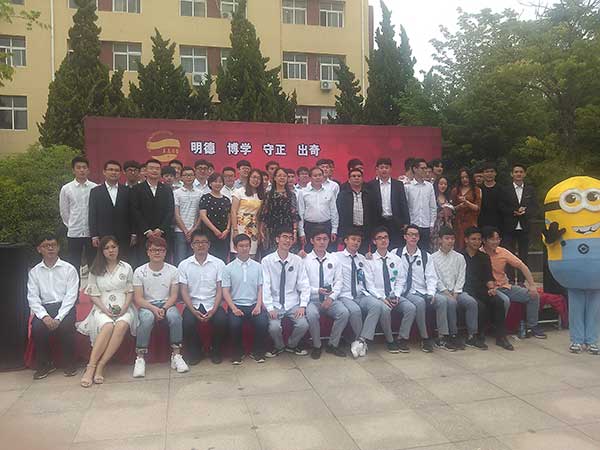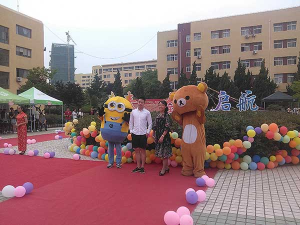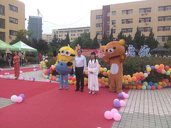 典礼结束后,毕业生穿过充满自己四年大学经历的长廊,领取了纪念品,并与老师们合影留念。此前,全体毕业生在青岛大学图书馆楼前进行毕业合影留念。