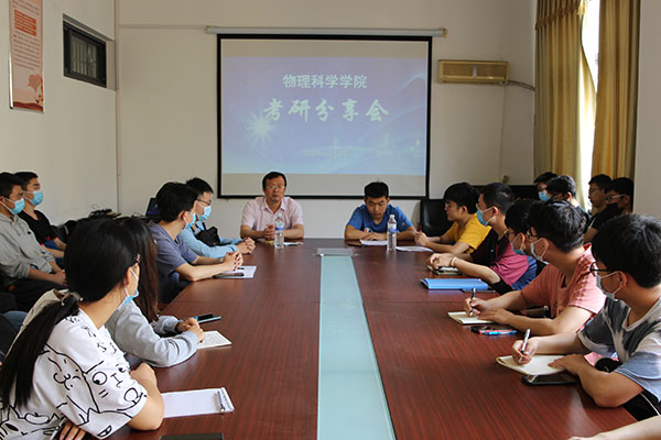 在博逸楼401会议室举行学生考研分享会,院党委副书记郝伟主持会议,考研学生段桂靖、毕研晓、王浩分享了考研体会,物理教育系2018级学生参加了分享会。