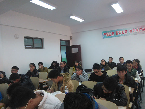 12月6日上午9:00,山东省教学名师陈沙鸥在博远楼306教室为师生上了色碟 第二堂观摩示范课——热力学统计物理,院长孔伟金、副院长滕冰及色碟 青年教师16人参加了观摩。