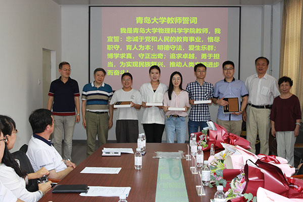 做好传帮带工作。滕冰对入职的五位新教师表示热烈欢迎,希望在未来的教育教学中,新教师以前辈为榜样,做好优良师德师风传承,并将宣誓转化为实际行动,为学校和色碟