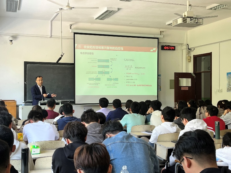 98级校友、上海交通大学黄兴溢教授受邀返校,在博知楼207教室作了题为《集成高导热实现聚合物薄膜高温电容性能突破》的报告,分享了自己在研究领域的新成果。报告会由滕冰院长主持,70余位师生聆听了报告。
