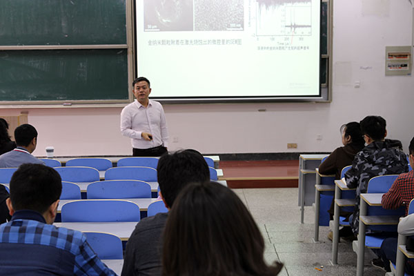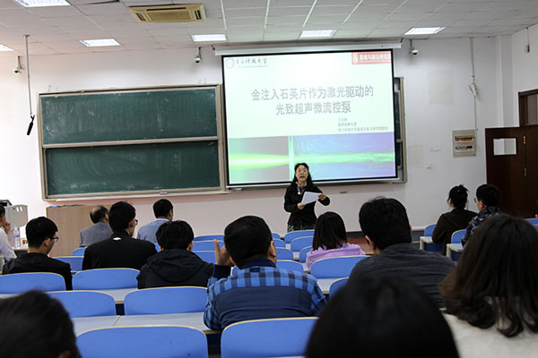 5月13日上午,我校校友、电子科技大学基础与前沿研究院院长王志明教授应邀在博远楼103教室为学生作了题为《金注入石英片作为激光驱动的光致超声微流控泵》的学术报告暨考研宣讲。报告会由院长滕冰主持。色碟