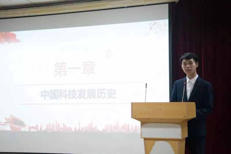 三班杨畅同学围绕“科技无限,创新不止”,带大家领略了古人的智慧,品读了当代的风采。